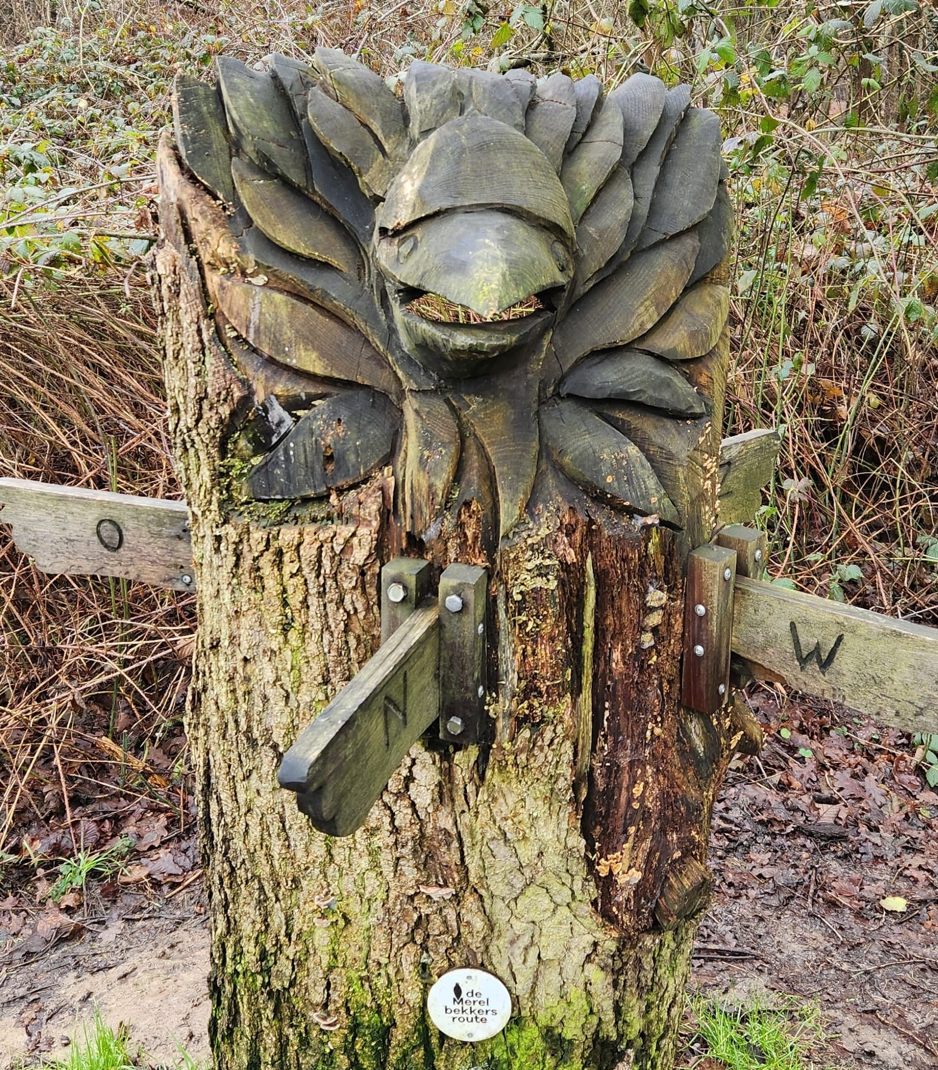 Elegimos la ruta 4 y recorremos el itinerario más largo: ideal para una tarde de invierno en la naturaleza de Merelbeek. Glenda Krasch, la urraca y chismosa ruidosa de la Orden de Merelbekkers, recibió por la noche la visita de un admirador secreto. Cuando la encontramos al comienzo de la ruta, su corazón aún late con fuerza. Ahora nos toca a nosotros desenmascarar a este visitante nocturno.