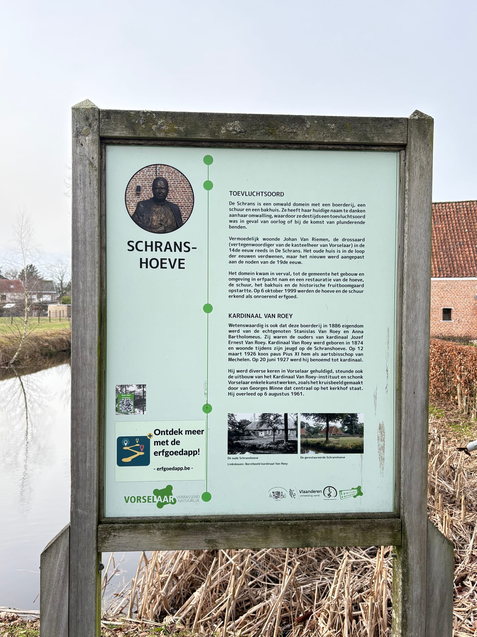 La historia comienza (y termina) en Schranshoeve, donde el pasado y el presente se cruzan de forma visible. Aquí te recibirá el cardenal Van Roey, quien te contará más al respecto. Schranshoeve fue el lugar donde vivió y estudió durante su juventud. Hoy en día, después de tu paseo, puedes disfrutar de un delicioso almuerzo o una bebida. A lo largo de la ruta encontrarás además paneles informativos con datos adicionales.